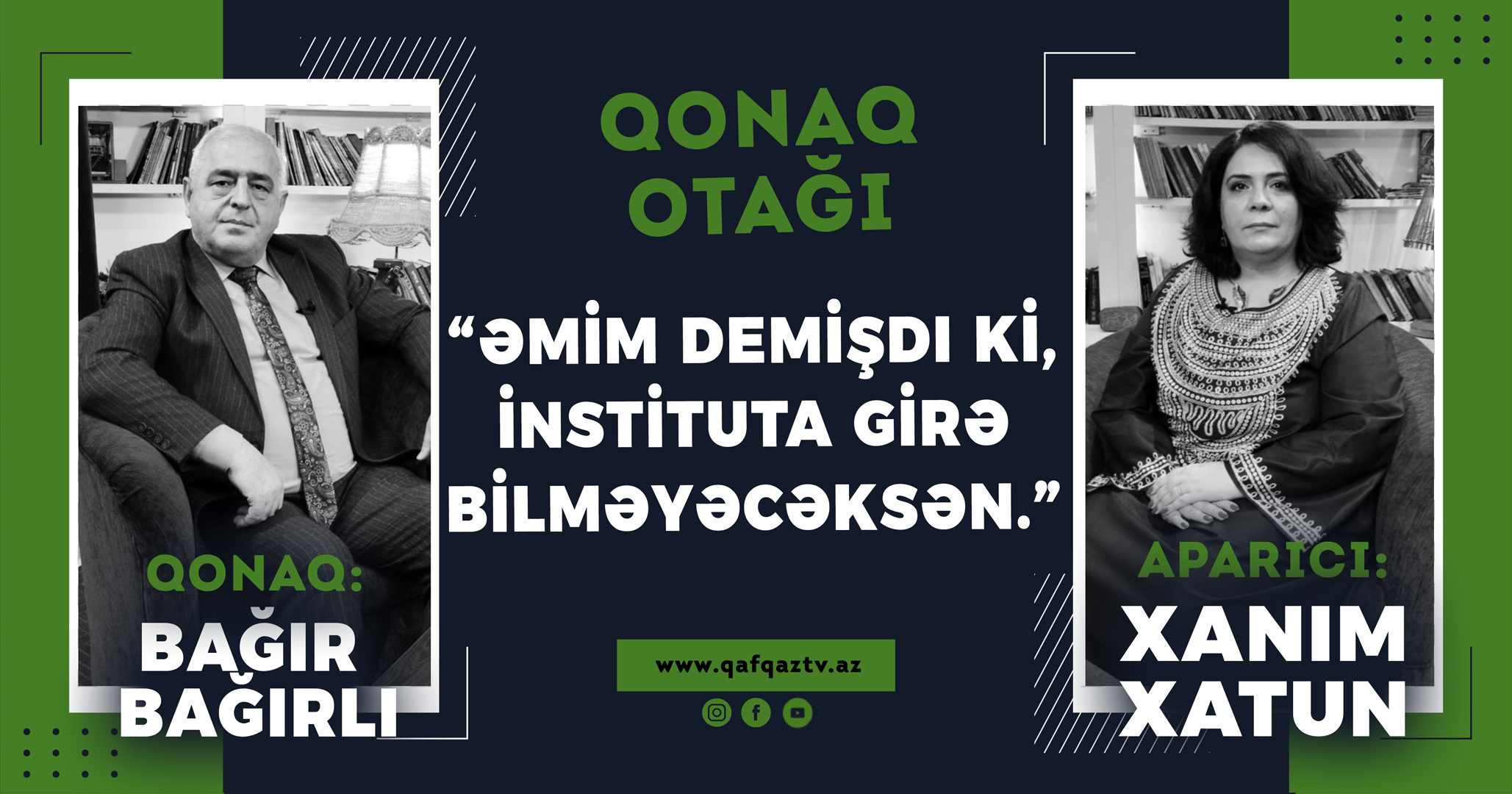 "Qonaq Otağı" verilişinin bu dəfəki qonağı — Azərbaycan Jurnalistlər Birliyinin və Yazıçılar Birliyinin üzvü, “Dahi” qəzetinin baş redaktoru,