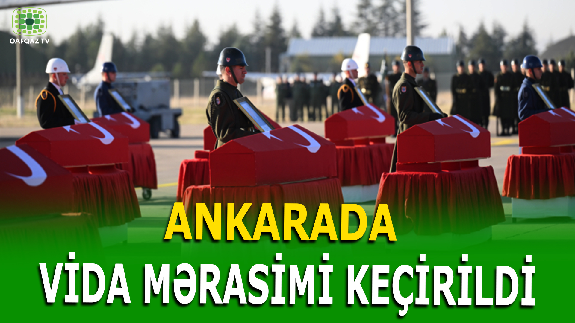 Türkiyənin Gürcüstanda qəzaya uğrayan yük təyyarəsində şəhid olan 20 hərbçi ilə Ankarada vida mərasimi keçirilib.Vida mərasimində Türkiyə Milli Müdafiə Nazirliyinin rəsmiləri, şəhidlərin yaxınları və digər dövlət rəsmiləri iştirak edib.